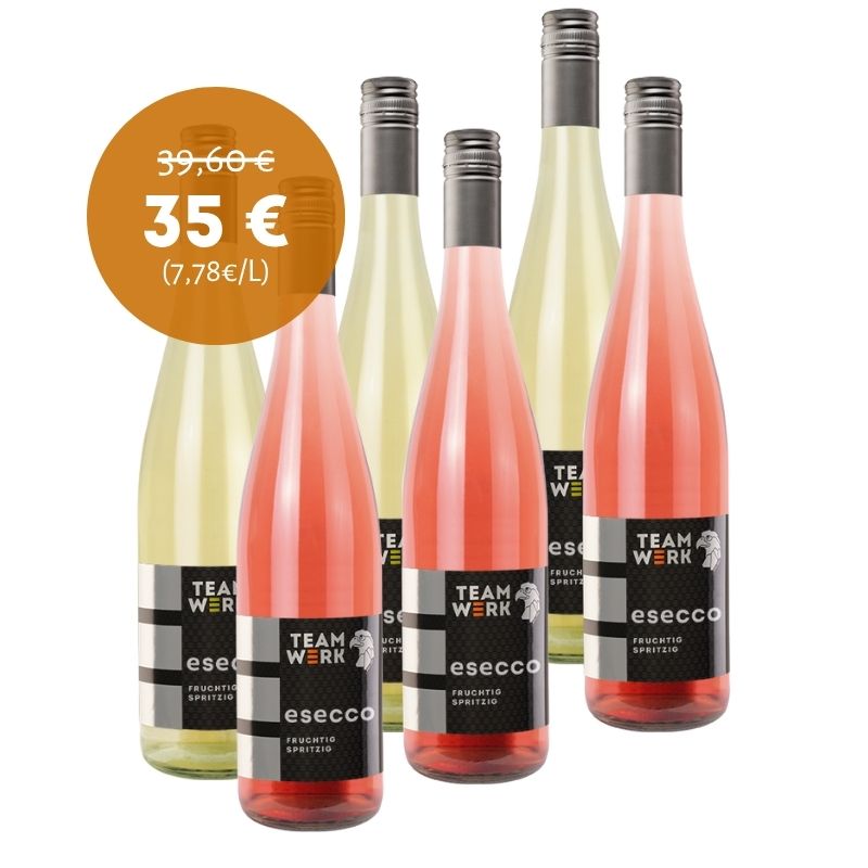 3 Flaschen esecco rosé + 3 Flaschen esecco weiß zum Aktionspreis
