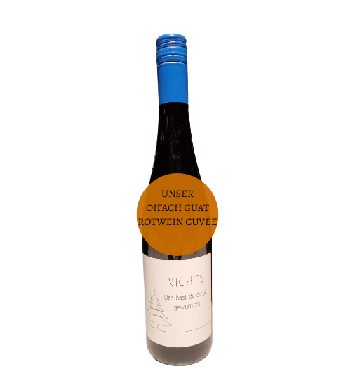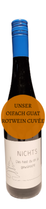 Harmonischer Rotwein mit viel Frucht, Würze und Fülle. Mit Weihnachtlichem Etikett.