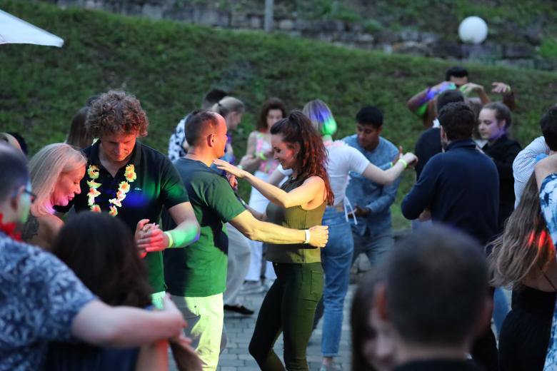 Salsa & Bachata über den Dächern von Esslingen Feiern Sie den Sonnenuntergang bei unserer Latin Sunset Dance Party am Weinberg! Freuen Sie sich auf mitreißende Workshops, verschiedene Dancefloors und erstklassige DJs. Erleben Sie heiße Salsaund sinnliche Bachata-Rhythmen – für Anfänger wie für Fortgeschrittene. Unsere Weine, erfrischende Cocktails und Speisen können vor Ort erworben werden.